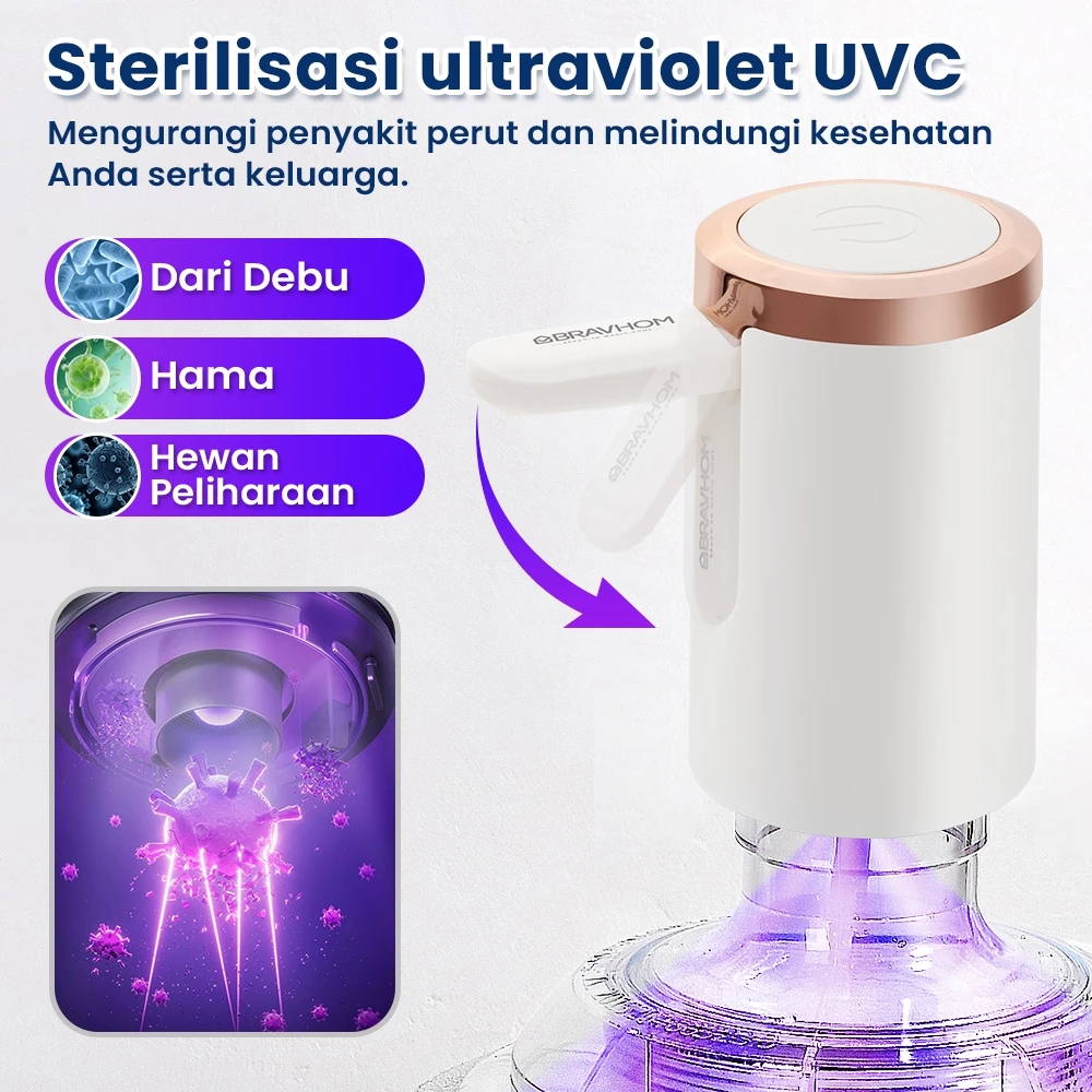 Produk terbaru dari BRAVHOM ini hadir sebagai jawaban atas masalah sehari-hari. Dengan desain pompa galon elektrik lipat yang ringkas, higienis, dan mudah digunakan, kamu bisa menikmati air minum kapan saja tanpa repot.